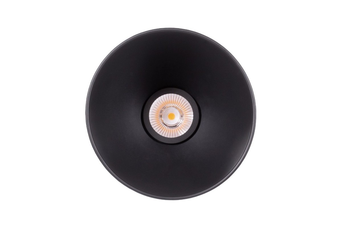 LED-pendelarmatur designad med svart kåpa och integrerat drivdon.