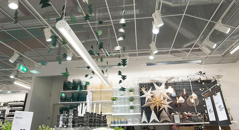 Expanded metal is a material that can advantageously be used in suspended ceilings. Caleidoscope offers expanded metal cassettes for installation in T-profile systems, cassettes for concealed installation in the Vario™ rail system or as filling material for our functional ceilings fixPOiNT or prioGRID. By choosing different sizes of the opening, you can get everything from denser to airy transparent ceiling solutions.