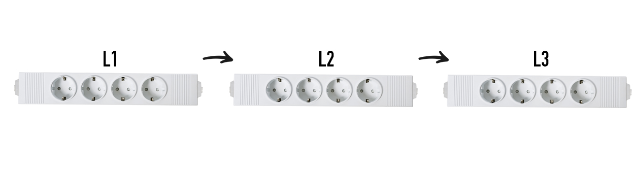 The socket box is equipped with internal phase rotation.