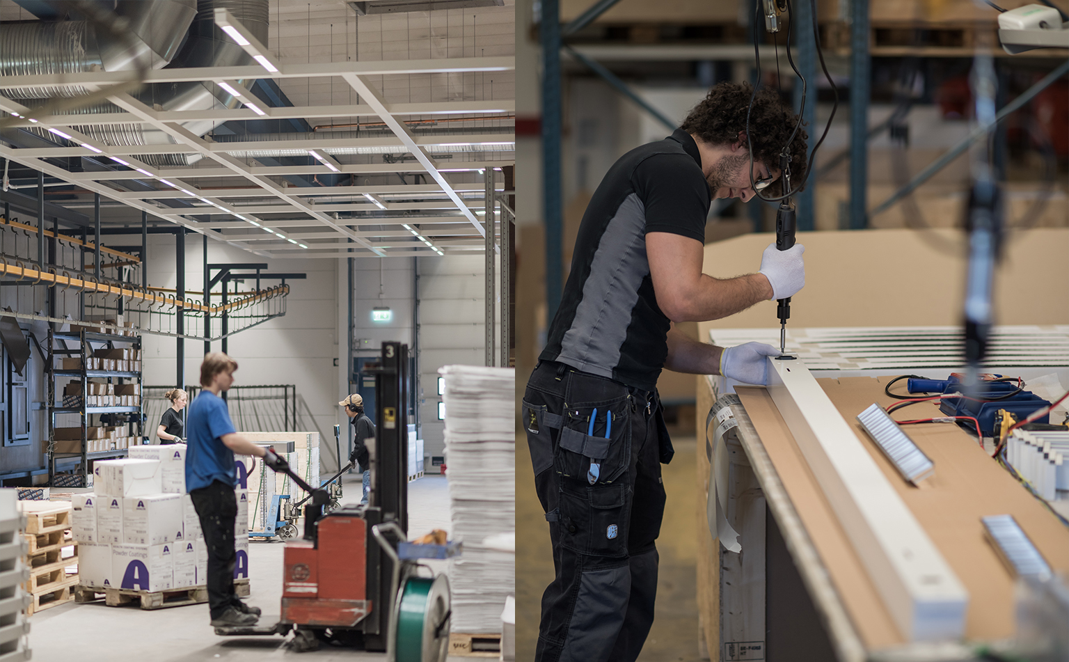 We have an ambition to limit our products’ environmental impact throughout their entire life cycle – from production to recycling. Through careful selection of materials, sustainable manufacturing processes and the product’s design, we strive to ensure that each product meets our requirements for sustainability. An important part of this work is that our products are manufactured to the greatest extent possible in Sweden, which minimizes the climate impact of transport and supports local labor markets. The volume-demanding products, such as suspended ceiling profiles and lighting fixtures, are manufactured and assembled in the immediate area around Gislaved. This enables us to streamline transport and reduce emissions.