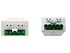 4-vägs uttagsbox i slimmad design för placering i Fixpoint 100-80, prioGRID 70-50 eller andra undertakslösningar.
