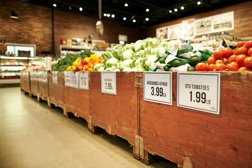 Shot of an assortment of fresh produce being stored in boxes in a grocery store during the day