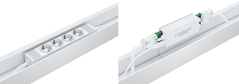 Caleidoscope tillverkar elsystem under eget varumärke, csNET. Ett smart och ekonomiskt sätt för att distribuera elkraft till din belysningsanläggning. Systemet finns som standard med 4-vägs jordade uttag eller med vår universalbox csNET BOX. Båda lösningarna ger dig möjlighet att ansluta belysningsprodukter utan krav på specialkontakter. Detta säkerställer din anläggning att kunna ansluta valfria produkter nu och i framtiden. Installationerna kan göras dolda eller synliga på montageplåtar. Läs mer under csNET.