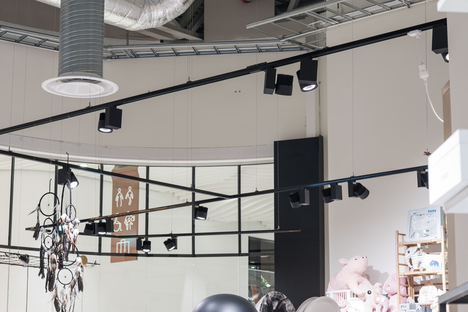 Belysningen i IEMS senaste butik på nya Eurostop i Halmstad består uteslutande av svarta Caleidoscope LED-spotlights med matchande 3-fas skena.