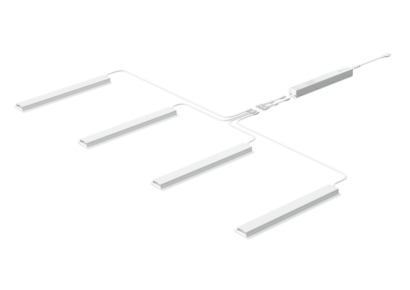 4 armaturer kan anslutas till Caleidoscope drivdon typ 224. Varje kanal kan anslutas med 2 st armaturer med hjälp av den medföljande Y-splittern till LED-drivdonet.